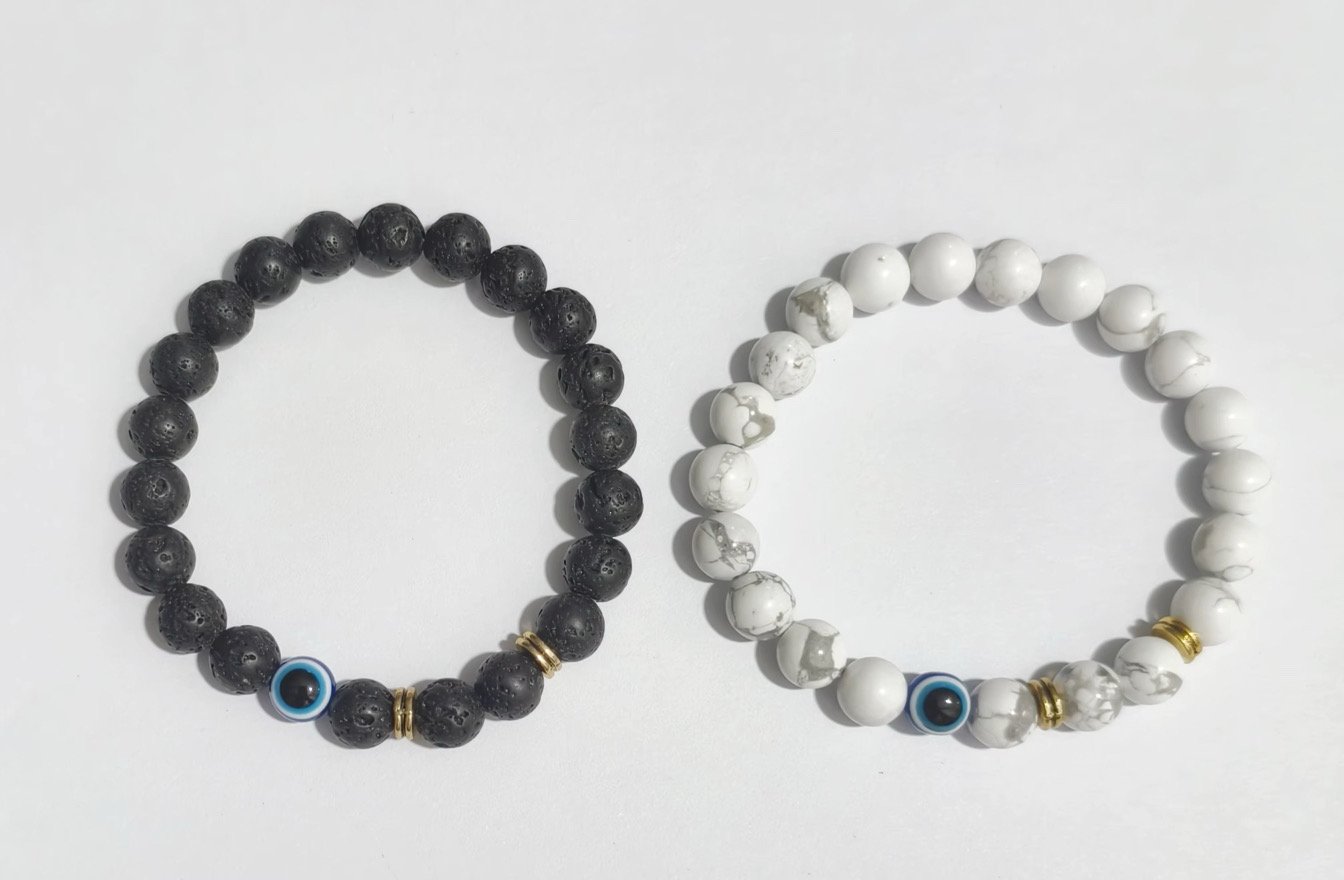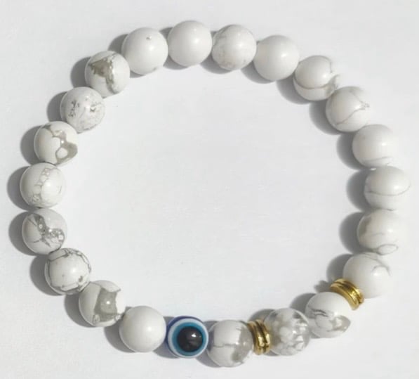 Find peace in simplicity. The Calm & Clarity Bracelet combines soothing white howlite stones with a gold-accented Evil Eye bead, creating a minimalist statement piece that brings calm focus to your day.