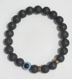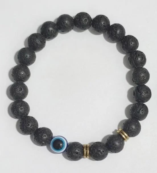 Ground yourself in calm strength. The Ground & Protect Bracelet features natural black lava stone beads, known for stability and grounding energy. The blue Evil Eye center bead shields against negativity and restores balance. Perfect for everyday wear and energy protection.